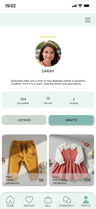 Develop a mobile application that enables users to buy and sell children’s clothing in a simple, safe, and sustainable way.