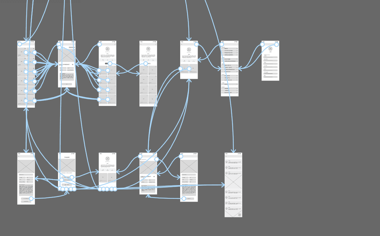 Based on the user flow, paper sketches, and digital wireframes, I created low-fidelity prototypes to test the app’s initial functionality and usability.