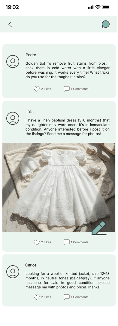 Users expressed interest in interacting with other parents, but there was no community feature available. Without a space to ask questions, share tips, or exchange experiences, the app felt less engaging and less supportive.